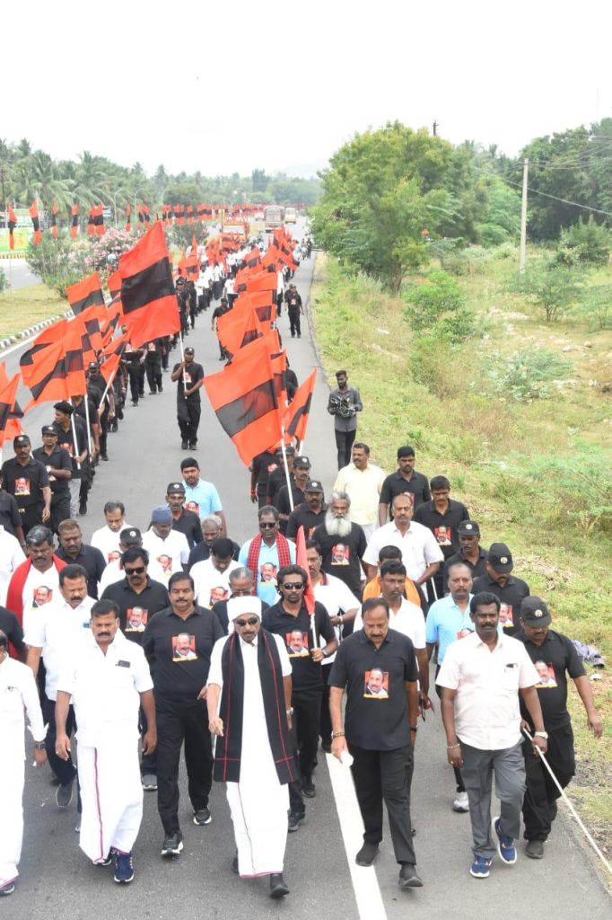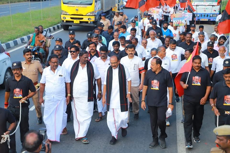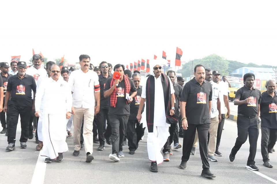 தமிழர்களின் நலனையும், தமிழ்நாட்டின் எதிர்காலமாம் இளைஞர்களின் வாழ்வையும் எண்ணி, ஒவ்வொரு நாளும், ஒவ்வொரு மணித்துளியும் கால் கடுக்க, உடல் வலிக்க திருச்சி முதல் மதுரை வரை 160 கி.மீ.க்கும் மேற்பட்ட தூரத்தை, 02.01.2026 முதல் 12.01.2026 வரை, பகல் வெயிலிலும், மாலை குளிரிலும் தொடர்ந்து 11 நாட்கள் மேற்கொண்டு வரும் சமத்துவ நடைபயணத்தை, எதிர்வரும் 12.01.2026 அன்று மதுரை மாநகரில் வெற்றிகரமாக நிறைவு செய்கிறார்.