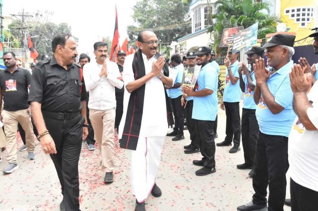 தமது சமத்துவ நடைபயணத்தால் கழகத்திற்கு புத்துணர்ச்சி ஊட்டி புது ரத்தம் பாய்ச்சியுள்ள இயக்கத் தந்தைக்கும் நெஞ்சார்ந்த நன்றி பாராட்டிடும் மாபெரும் நிறைவு விழாவில், கழகத் தோழர்கள் அனைவரும் தவறாது கலந்துகொண்டு சிறப்பு சேர்க்க வேண்டுமாய் அன்புடன் அழைக்கிறேன்.