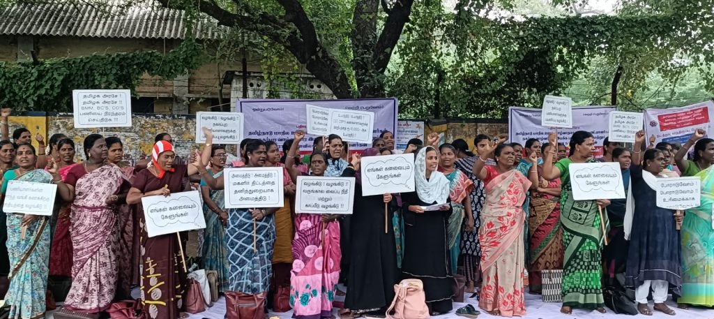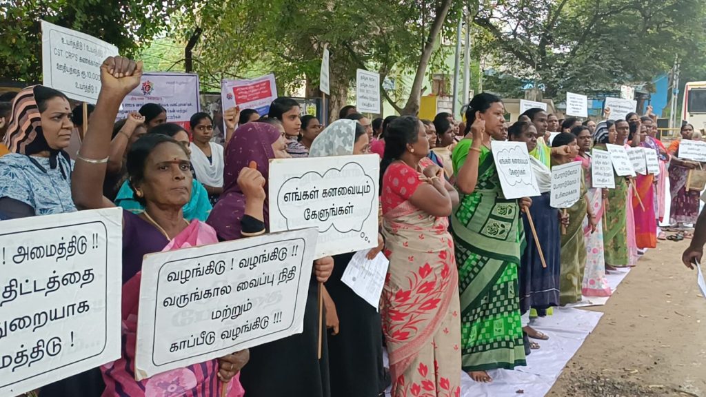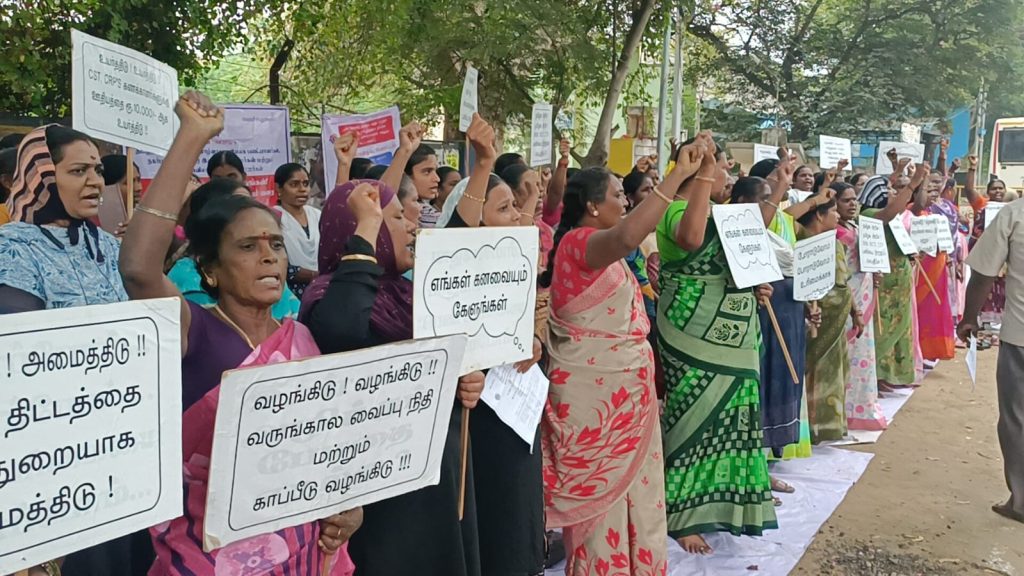 அவர்களது முக்கிய கோரிக்கைகளான…. பணியாளர்கள் ஆண்டு தோறும் பணி புதுப்பித்தல் முறையினை கைவிட்டு 15 ஆண்டுகளுக்கு மேலாக பணியாற்றும் பணியாளர்களுக்கு பணி பாதுகாப்பு மற்றும் பணி நிரந்தரம் வழங்கிட வேண்டும், தமிழ்நாடு மாநில ஊரக / நகர் புற வாழ்வாதார இயக்கம் பணியாளர்கள் உதவி திட்ட அலுவலர், வட்டார இயக்க மேலாளர், வட்டார ஒருங்கிணைப்பாளர், சமுதாய அமைப்பாளர் மற்றும் மாவட்ட கணினி உதவியாளர் , மாவட்ட மேலாண்மை தகவல் அமைப்பு பகுப்பாய்வாளர் ஆகியோர்களுக்கு குறைந்தபட்சம் ஊதியம் உயர்வு மற்றும் பயணப்படி வழங்கிட வேண்டும், பணியாளர்களின் காப்பீட்டு திட்டமான பொது காப்பீடு மற்றும் மருத்துவ காப்பீடு திட்டத்தின் கீழ் இணைப்பு செய்திட வேண்டும், பணியாளர்கள் ஊதிய தொகையினை மாவட்ட அளவில் மகளிர் திட்ட கோப்புகள் அலுவலகத்தின் மூலம் பணியாளர் வங்கி கணக்கிற்கு வழங்கிட வேண்டும், அனைத்து பணியாளர்களுக்கும் வருங்கால வைப்பு நிதி பிடித்தம் செய்திடவும் உயிரிழந்த பணியாளர்களின் குடும்பத்திற்கு இழப்பீடு வழங்கிட வேண்டும், அனைத்து பணியாளர்களுக்கும் ஈட்டிய விடுப்பு மற்றும் ஊதியத்துடன் கூடிய மருத்துவ விடுப்பு வழங்கிட வேண்டும், பெண் பணியாளர்களுக்கு மகப்பேறு கால விடுப்பு மற்றும் ஊதியத்துடன் வழங்கிட வேண்டும் உள்ளிட்ட 14 அம்ச கோரிக்கைகளை வலியுறுத்தி இந்த காத்திருப்பு போராட்டத்தில் அவர்கள் ஈடுபட்டனர்.