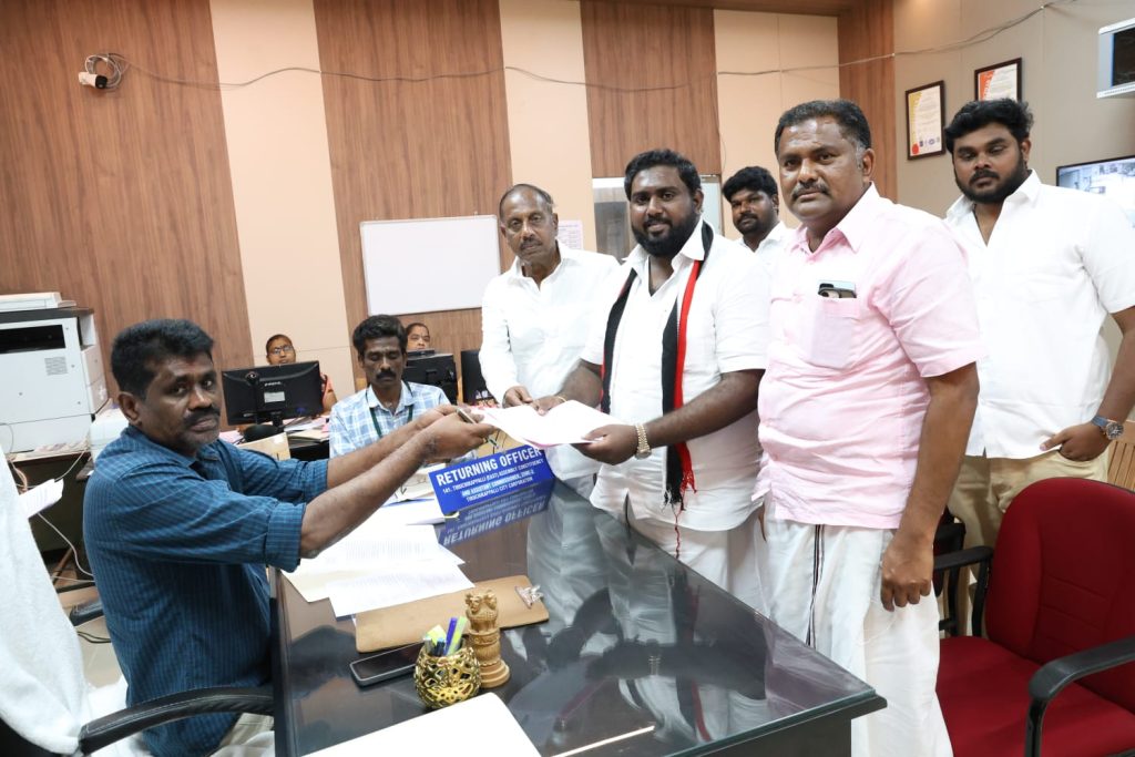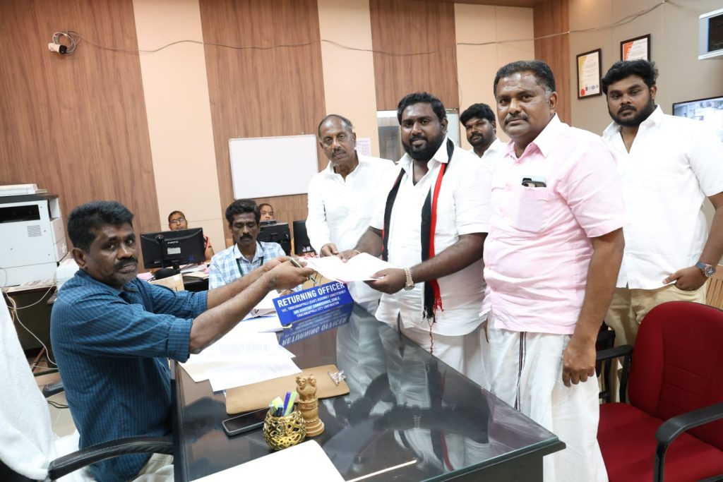 திருச்சி பாலக்கரை மதுரை ரோட்டில் உள்ள மாநகராட்சி அரியமங்கலம் மண்டல அலுவலகத்தில் நந்தகுமார் உதவி தேர்தல் நடத்தும் அலுவலரிடம் வேட்பு முடிவை தாக்கல் செய்தார். அப்போது கட்சி மற்றும் கூட்டணி கட்சி நிர்வாகிகள் உடன் இருந்தனர்.